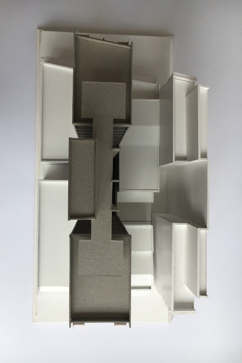 - A central circulation space containing lifts, access stairs and walkways connecting all parts of the building to the street.