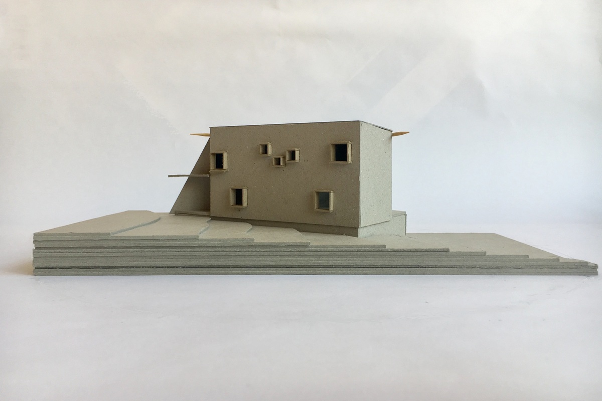 It’s a cost-driven project and therefore small in size, just 100sq m, consisting of an open-plan living area at ground level, with two sleeping spaces and bathroom on the first floor, overlooking the void.