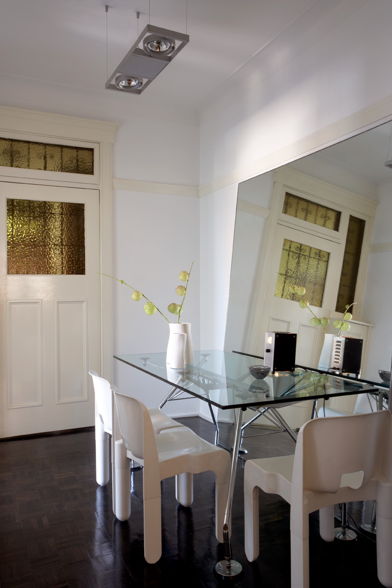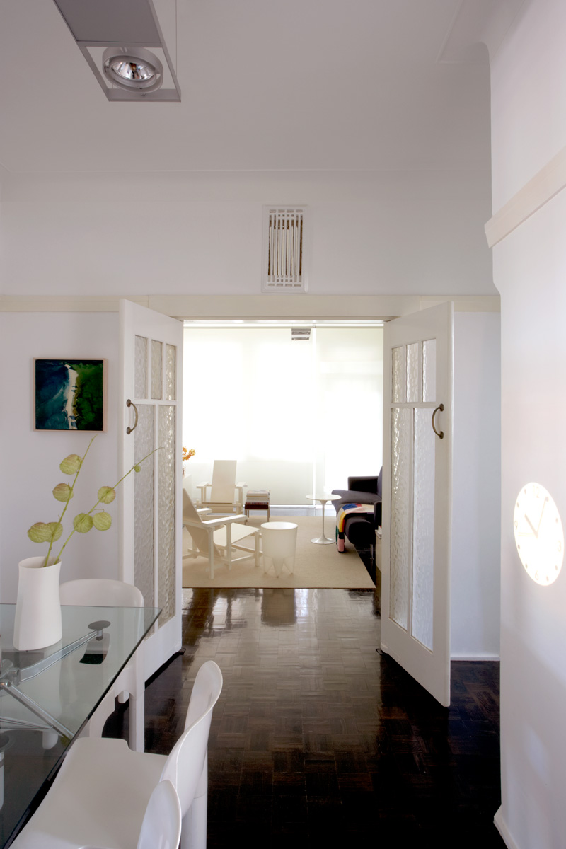The concept was to upgrade existing facilities through the addition of new architectural functional elements, while maintaining as many of the original elements and layout of the apartment as possible.